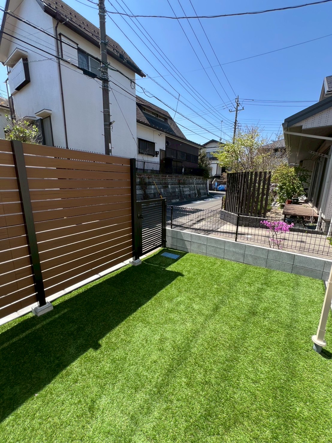お庭は人工芝にし手入れ不要で一年中鮮やかな緑を保ちます。