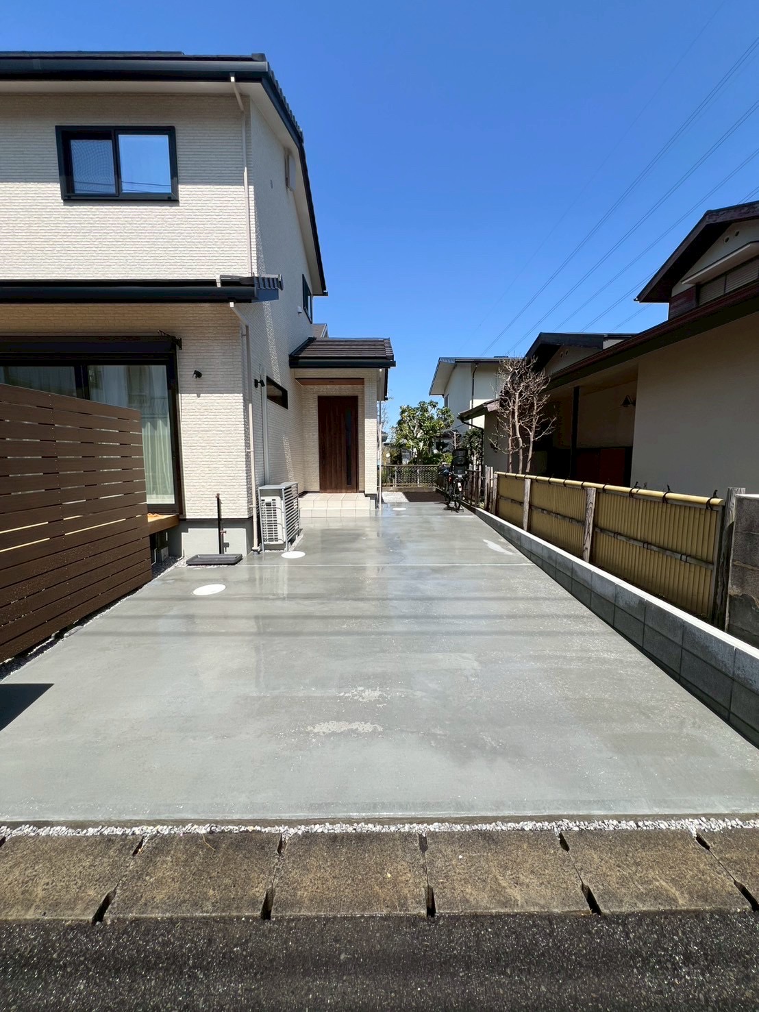 玄関アプローチには、耐久性の高い土間コンクリート施工で