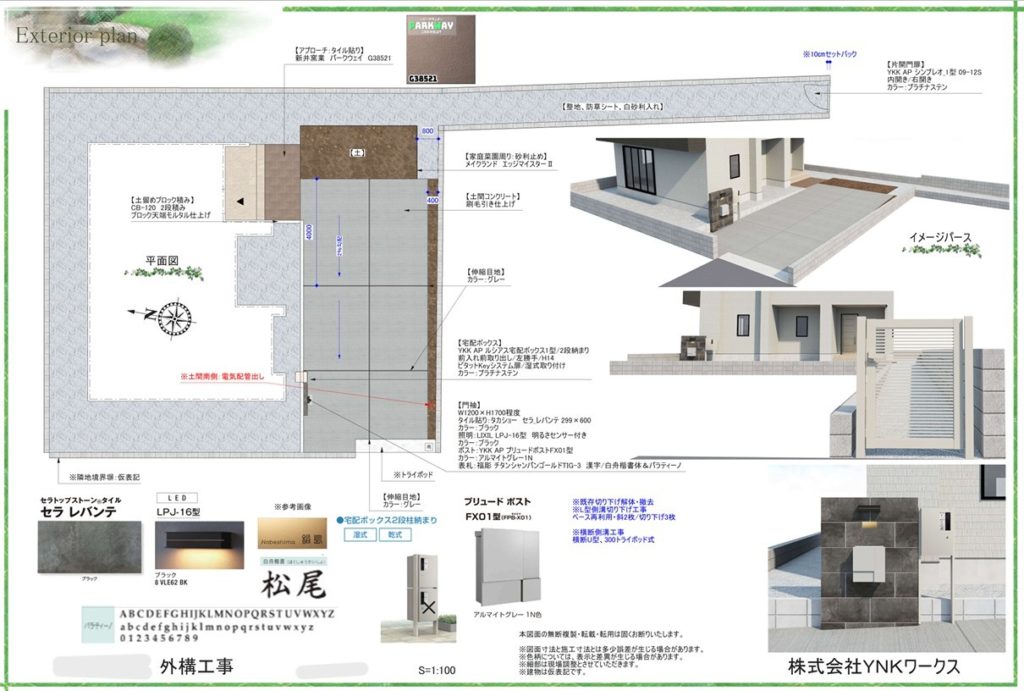 まとめた機能門柱を設置し便利な宅配ボックスも取り付けました。