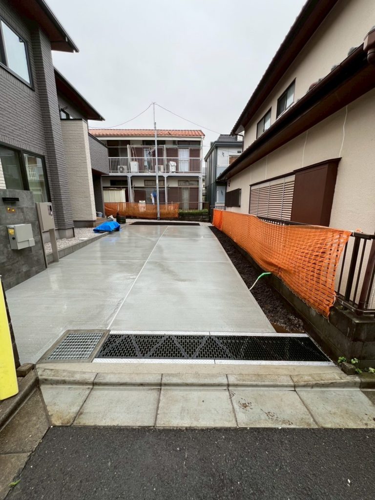 建物の前は土間コンクリートで施工し、雨の日でも滑りにくく安全です。