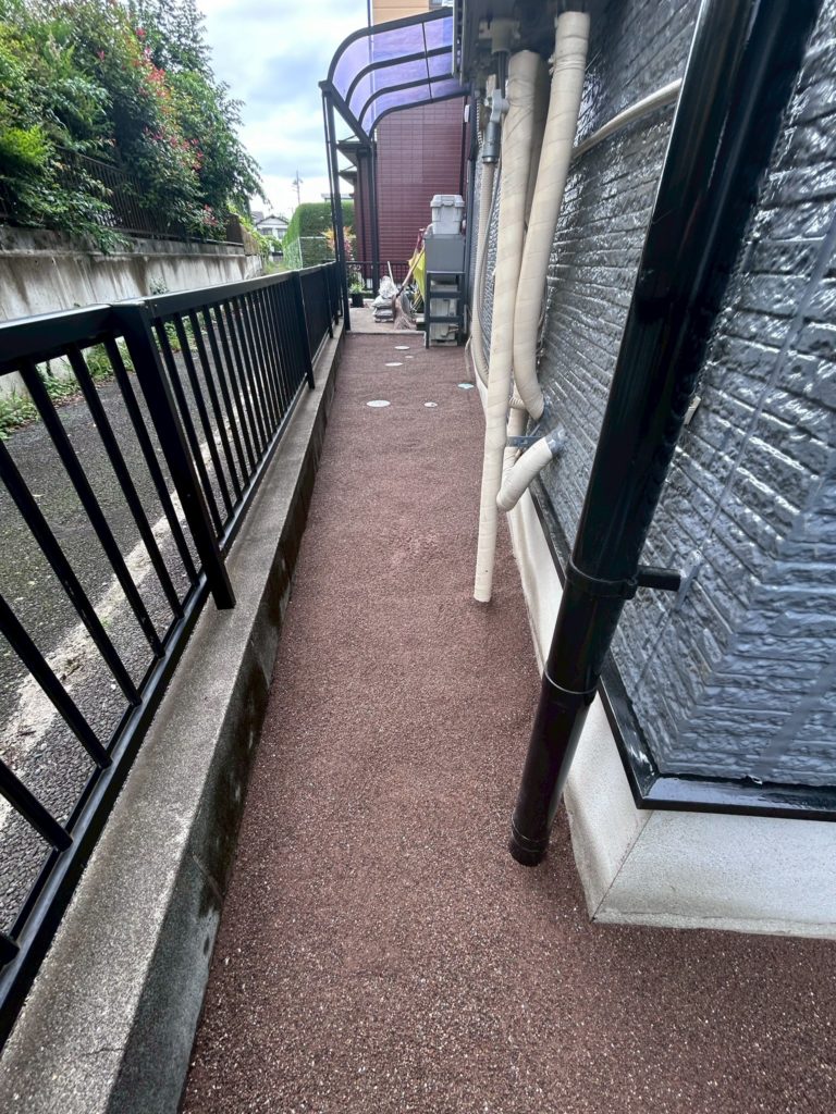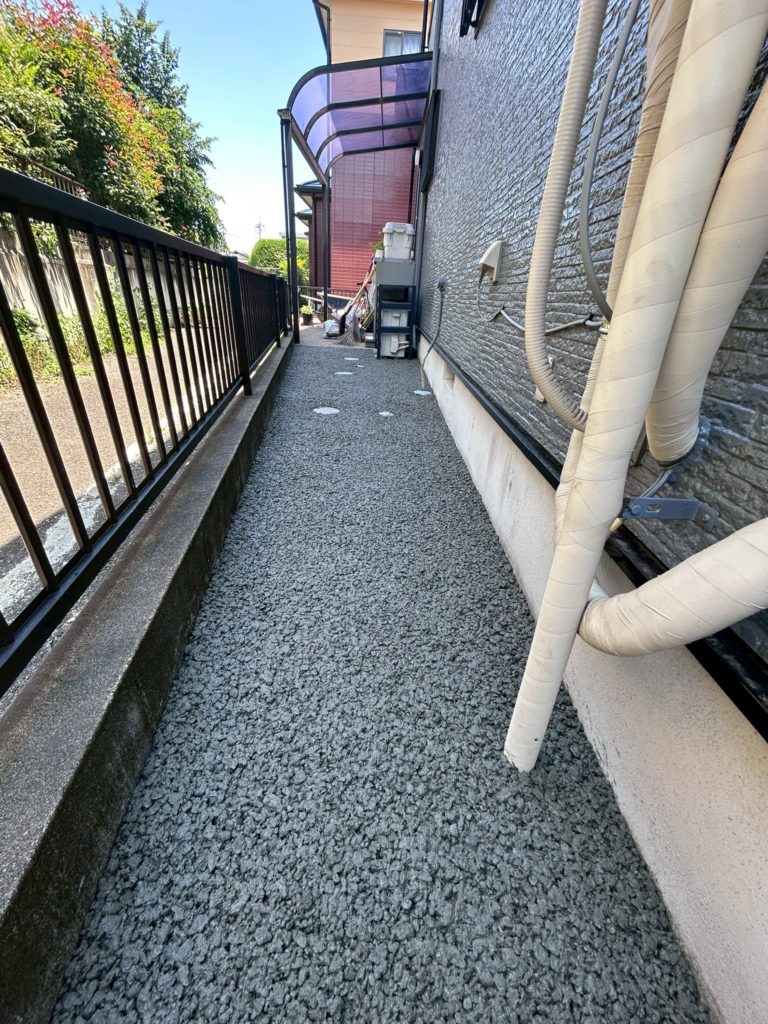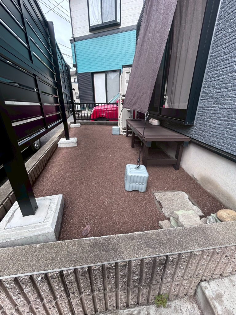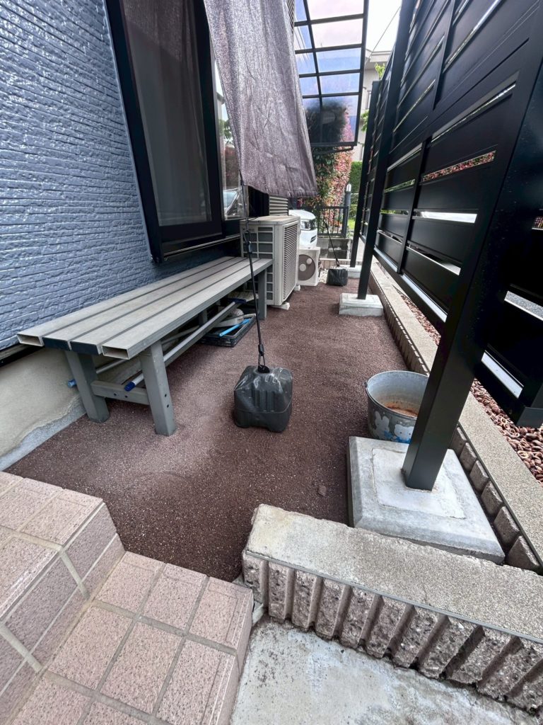 お庭と犬走り(家の周りの通路)に「オコシコン」施工を行いました🏡