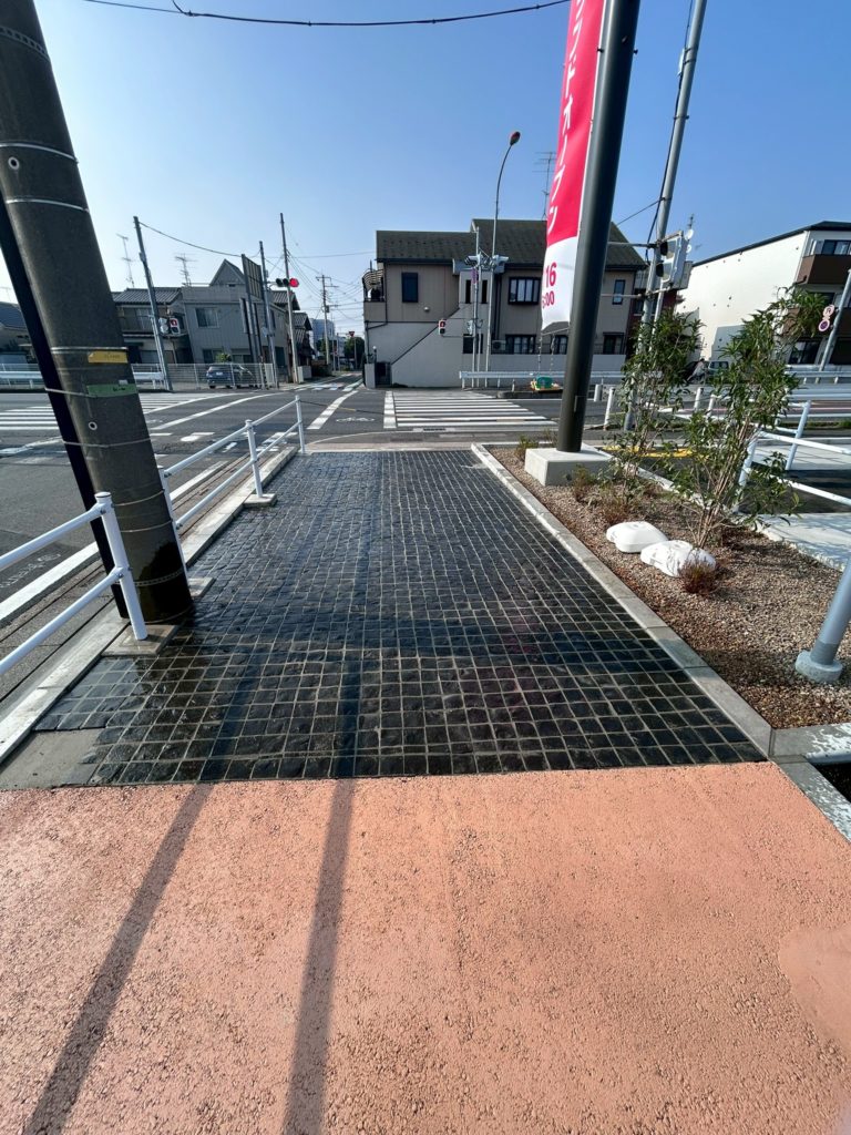 ピンコロの表面は適度にザラザラしているので、雨の日でも滑りにくく歩行者の安全性がアップ。