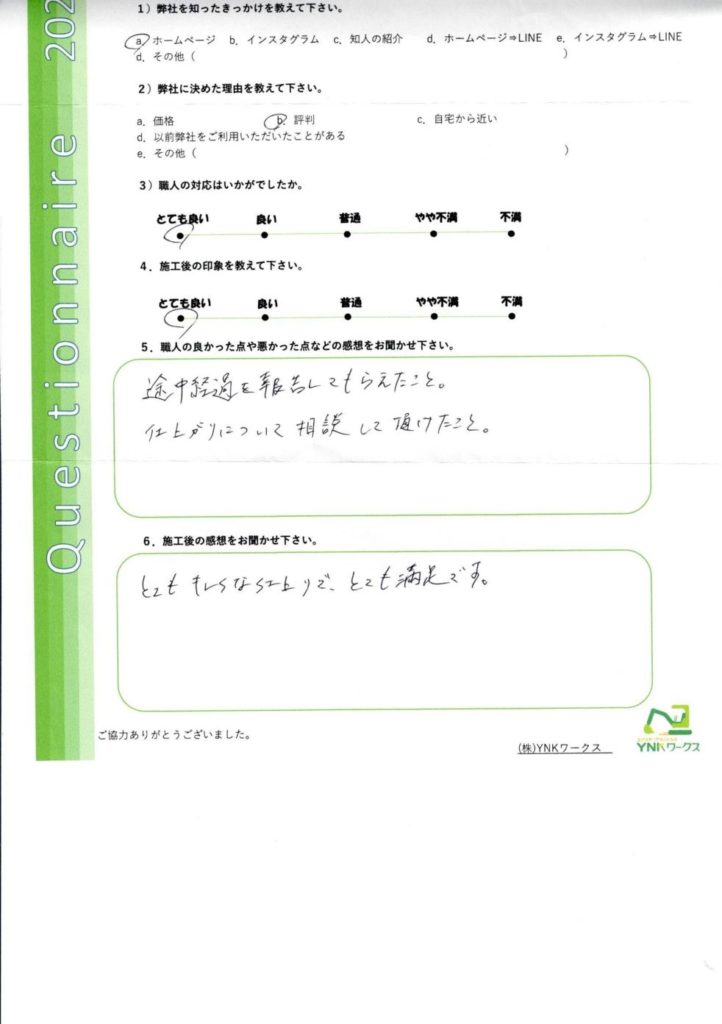 施工完了後のお客様にアンケートのご協力をいただきました♪