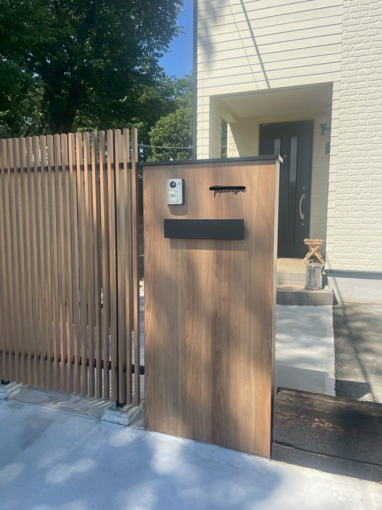 今回の工事の注目ポイントは、玄関前の機能門柱と目隠し格子の組み合わせ!