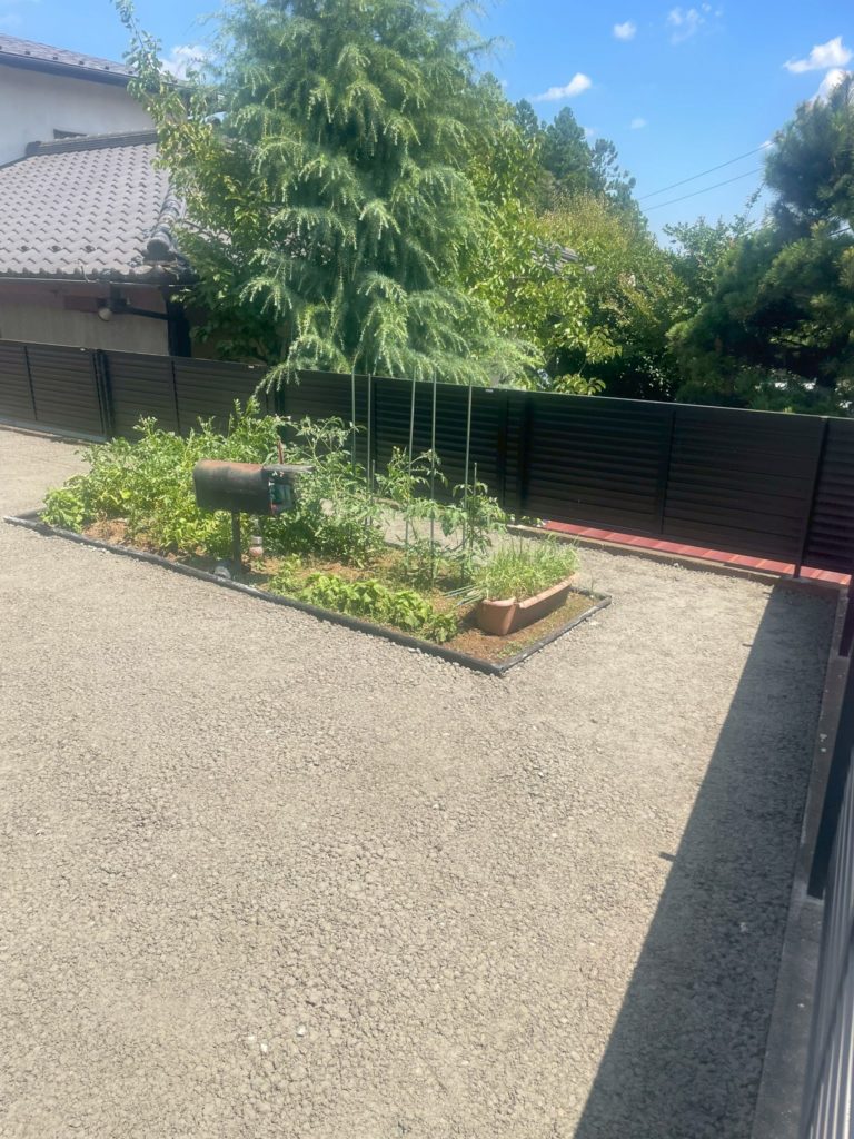 お庭部分にはオワコン施工を採用し、ぬかるみや水たまりの解消ができ