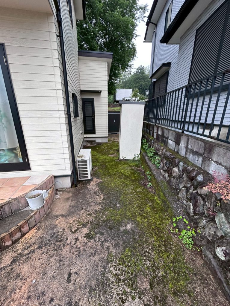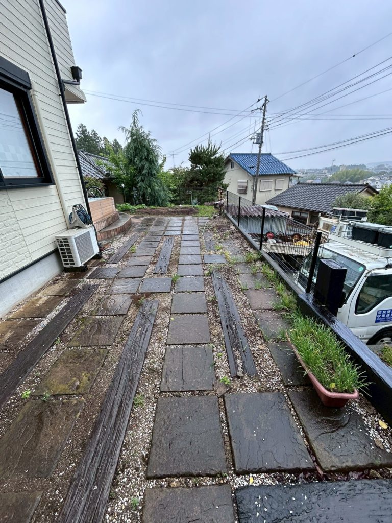 お庭部分にはオワコン施工を採用し、ぬかるみや水たまりの解消ができ