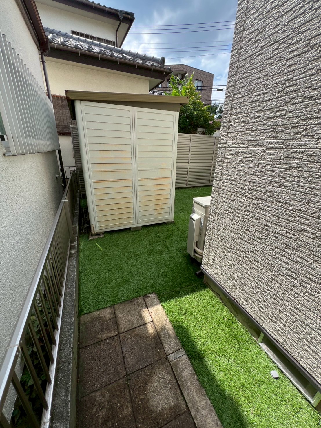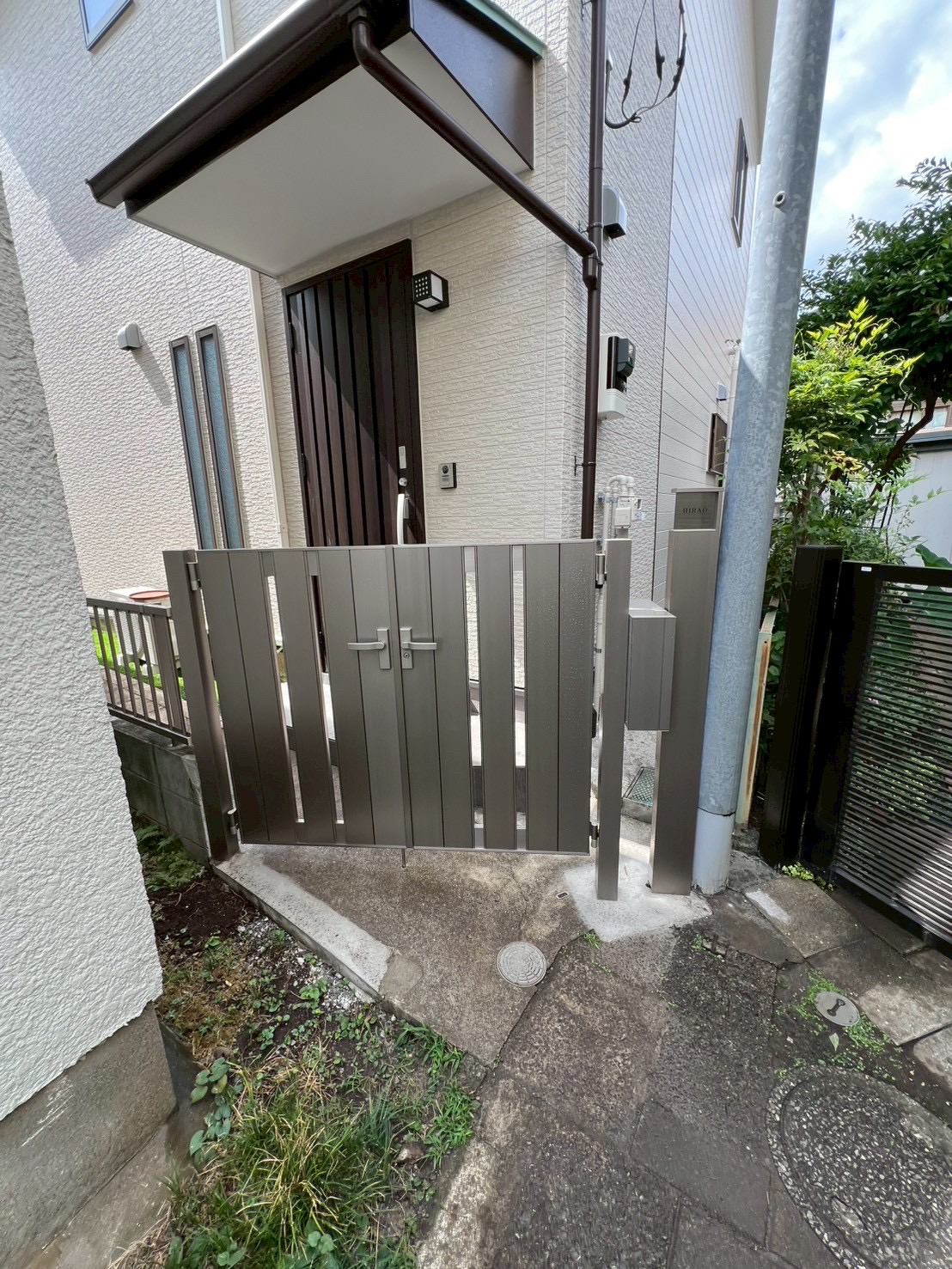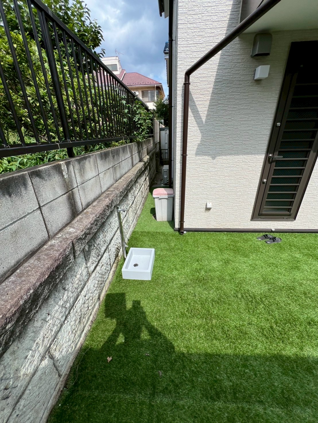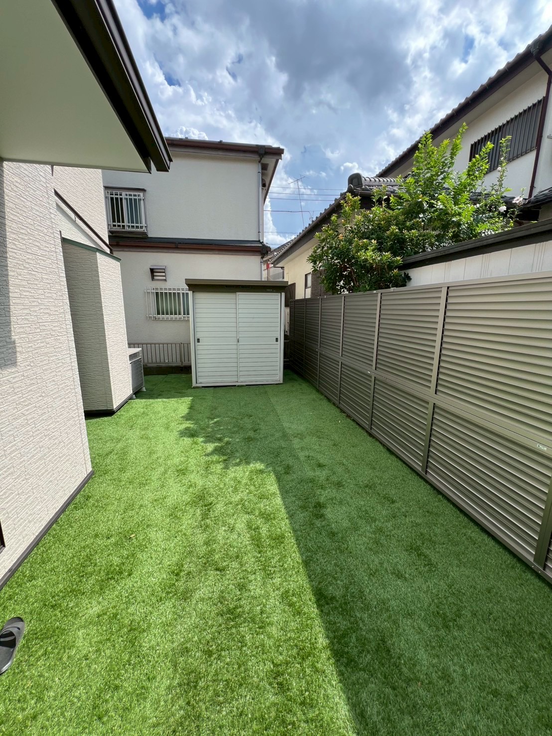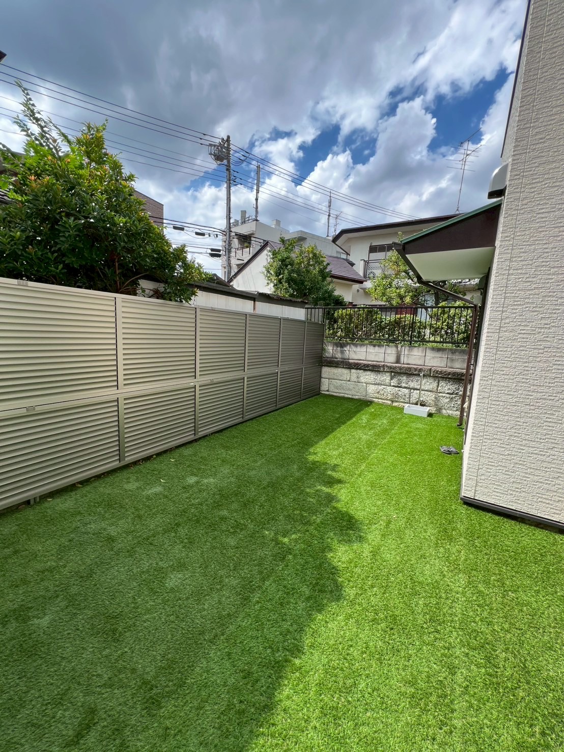 古くなった門扉やポスト、立水栓を一新しお庭には鮮やかな人工芝を施工!