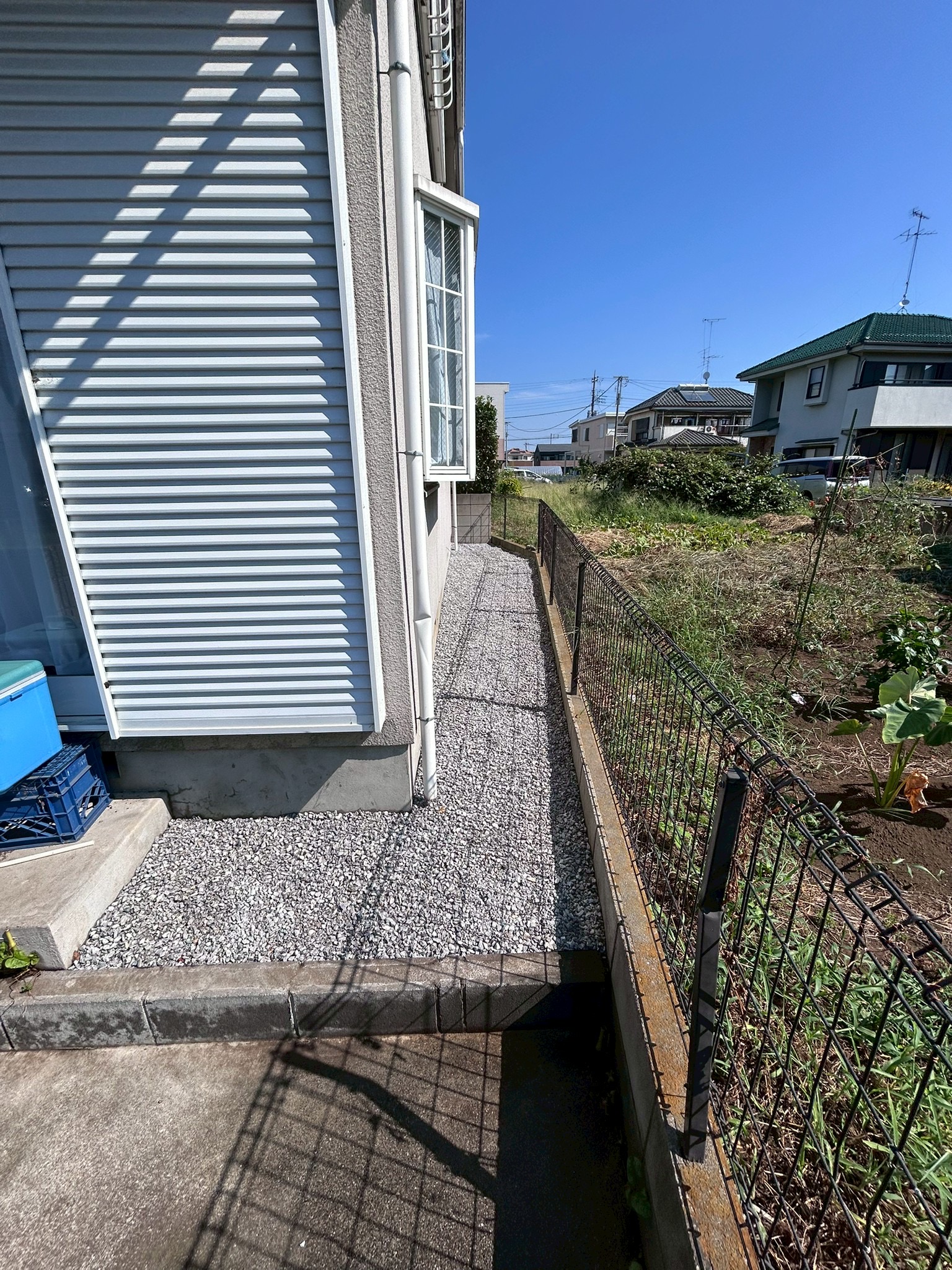 草刈りをして白砂利を敷きました!
