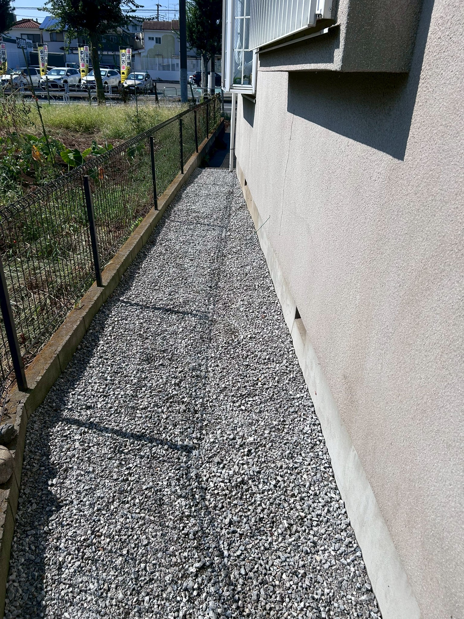 建物の周囲(犬走り)は、雑草が生い茂り見た目も悪くなっていましたが、