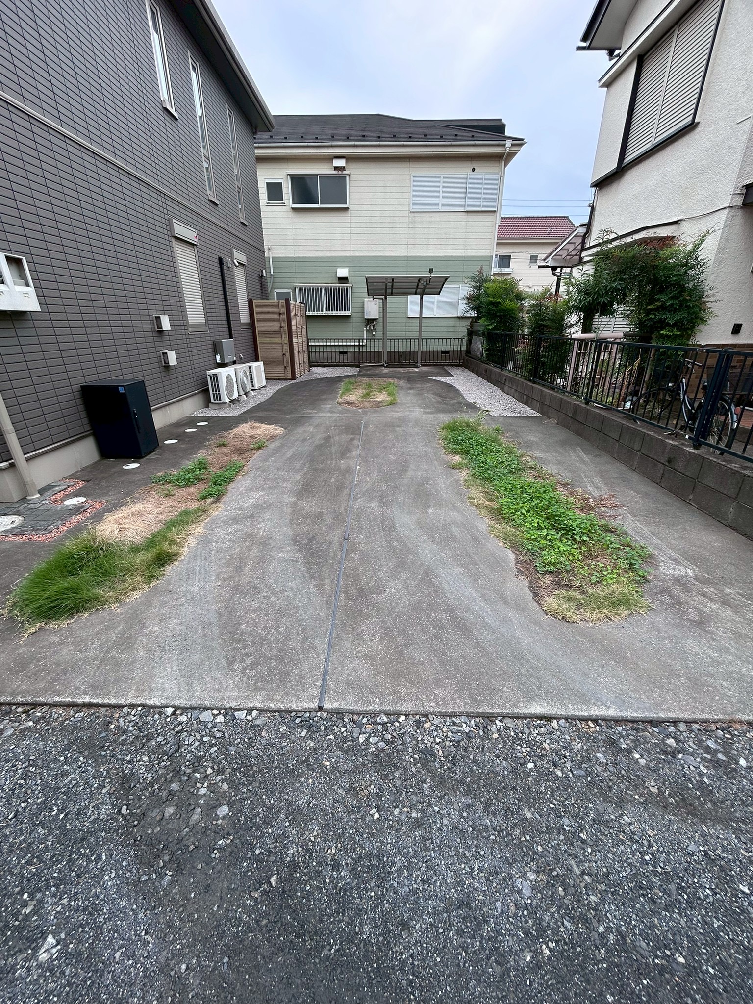 駐車場の雑草が生えていた箇所を、緑化ブロック(芝生を植えられる特殊なブロック)に変更!