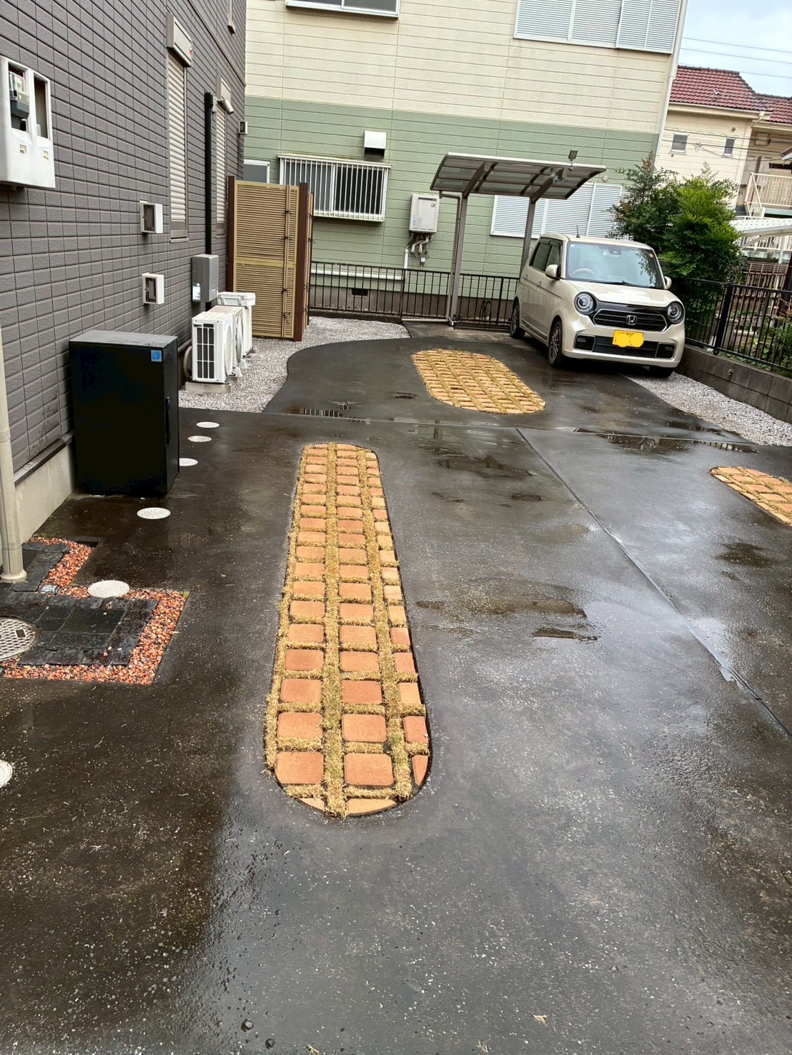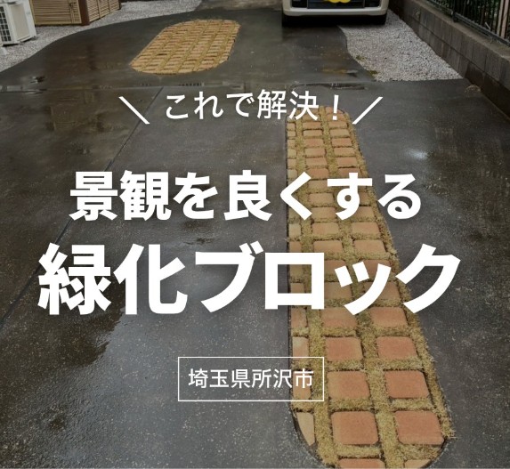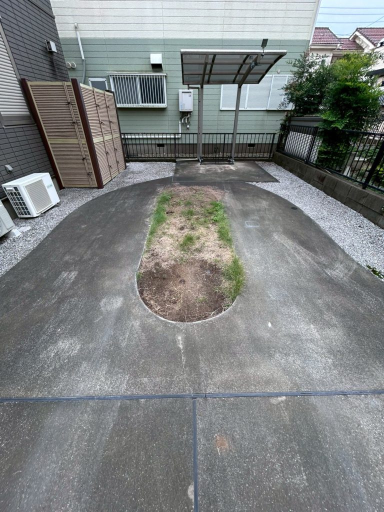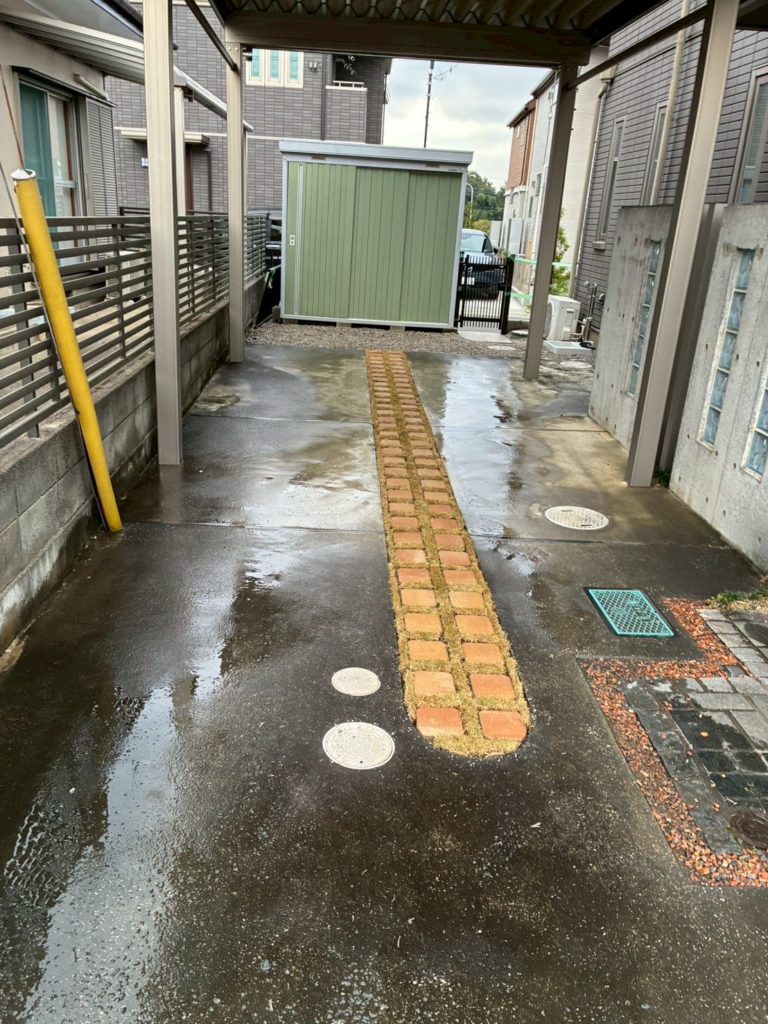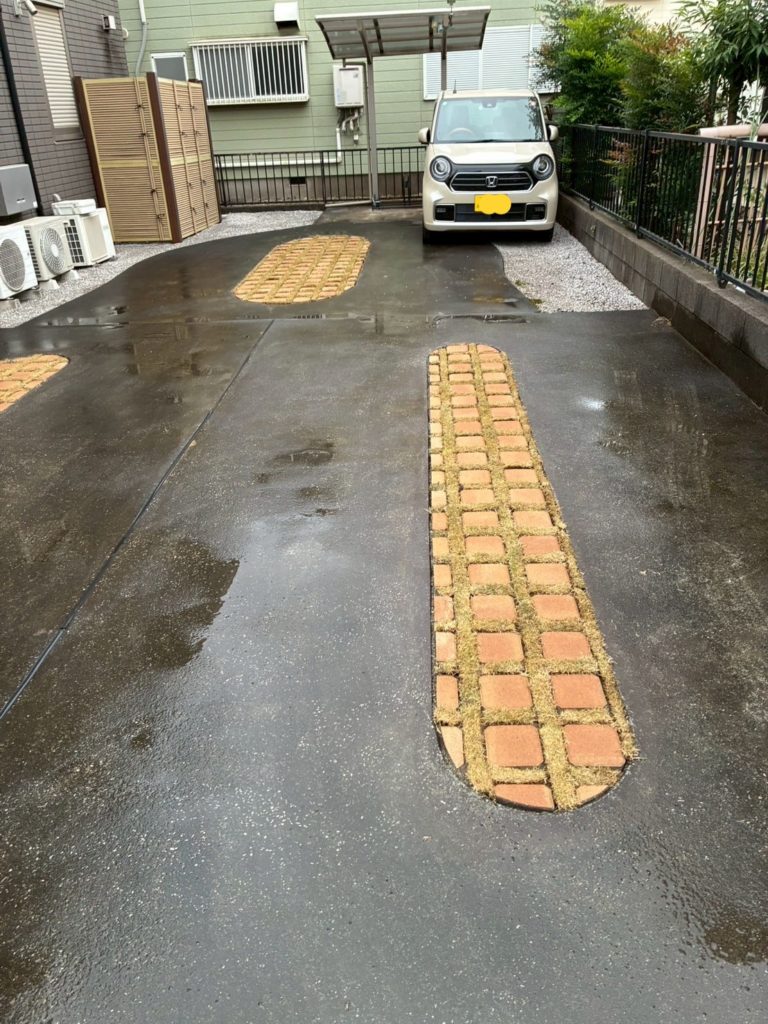 駐車場の雑草が生えていた箇所を、緑化ブロック(芝生を植えられる特殊なブロック)に変更!