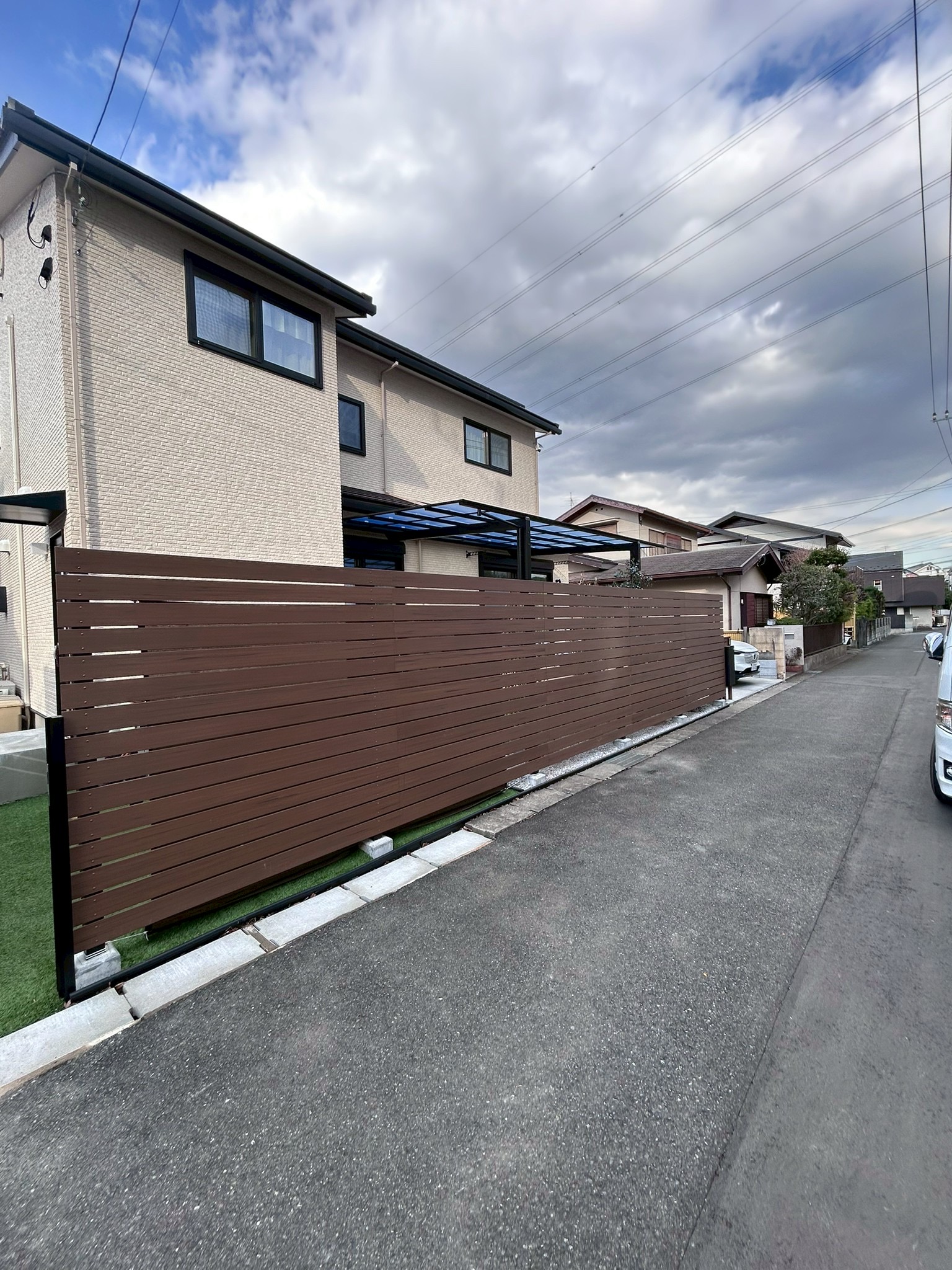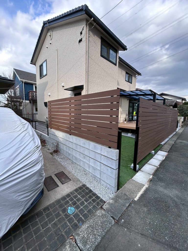 さらに、目隠しとして人気の板張りフェンスも設置。